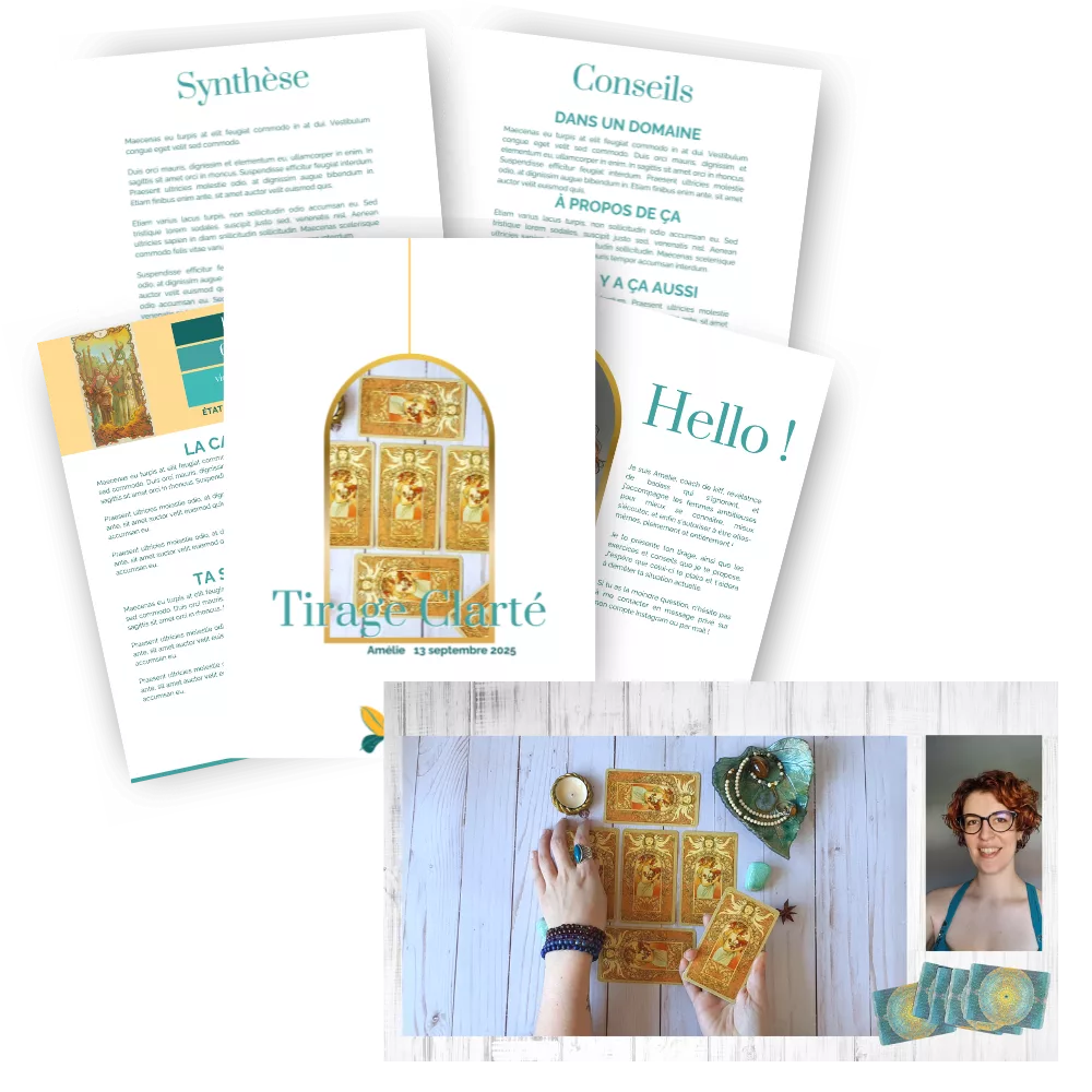 Formule accompagnée : ton tirage, l’explication des cartes, et mes conseils et exercices.