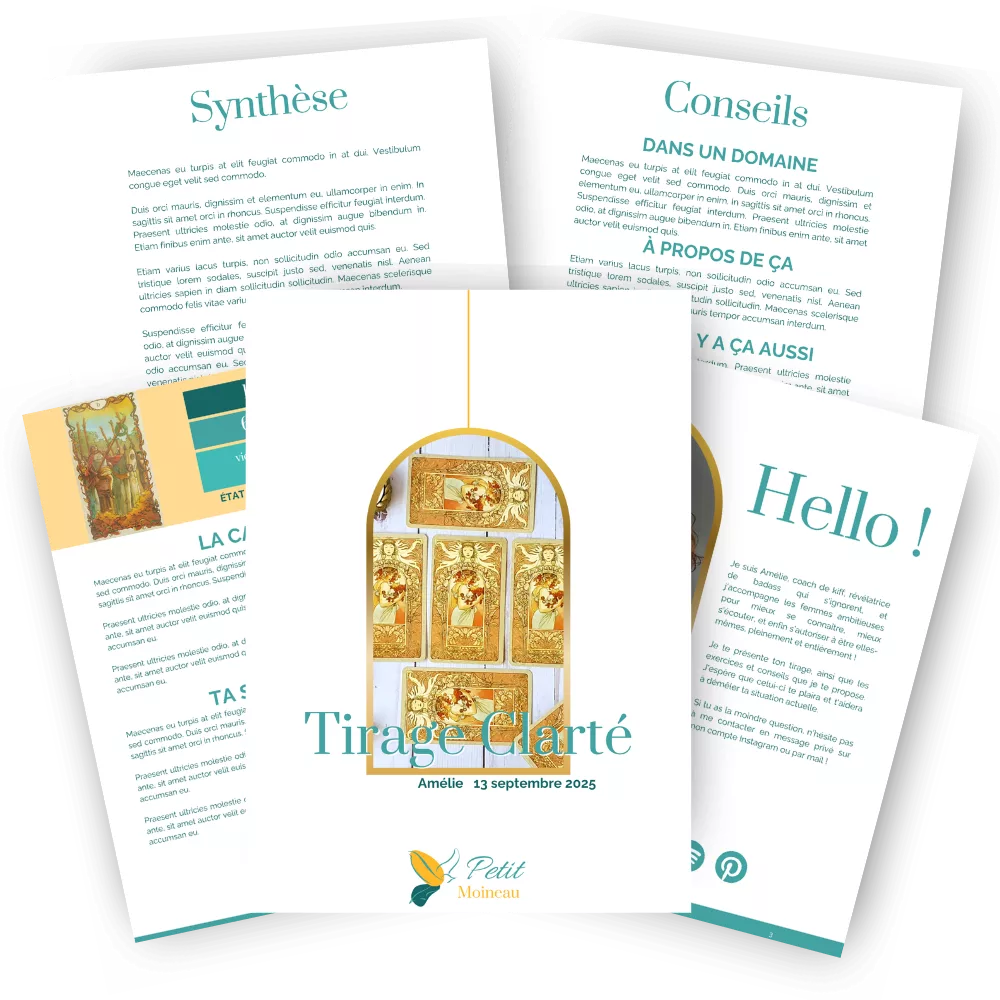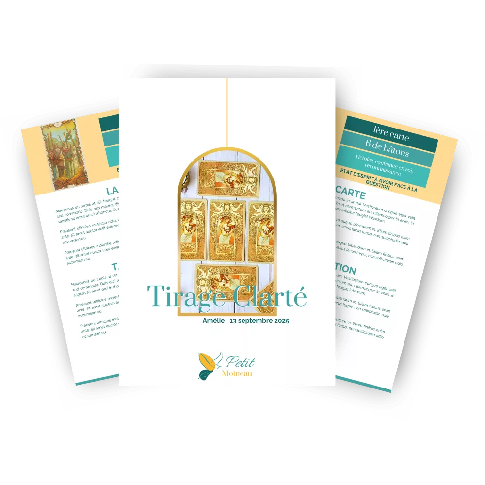 Inclus dans les 3 formules, ton livret contient tout ce dont tu as besoin pour comprendre ton tirage et t’aider à y voir plus clair :